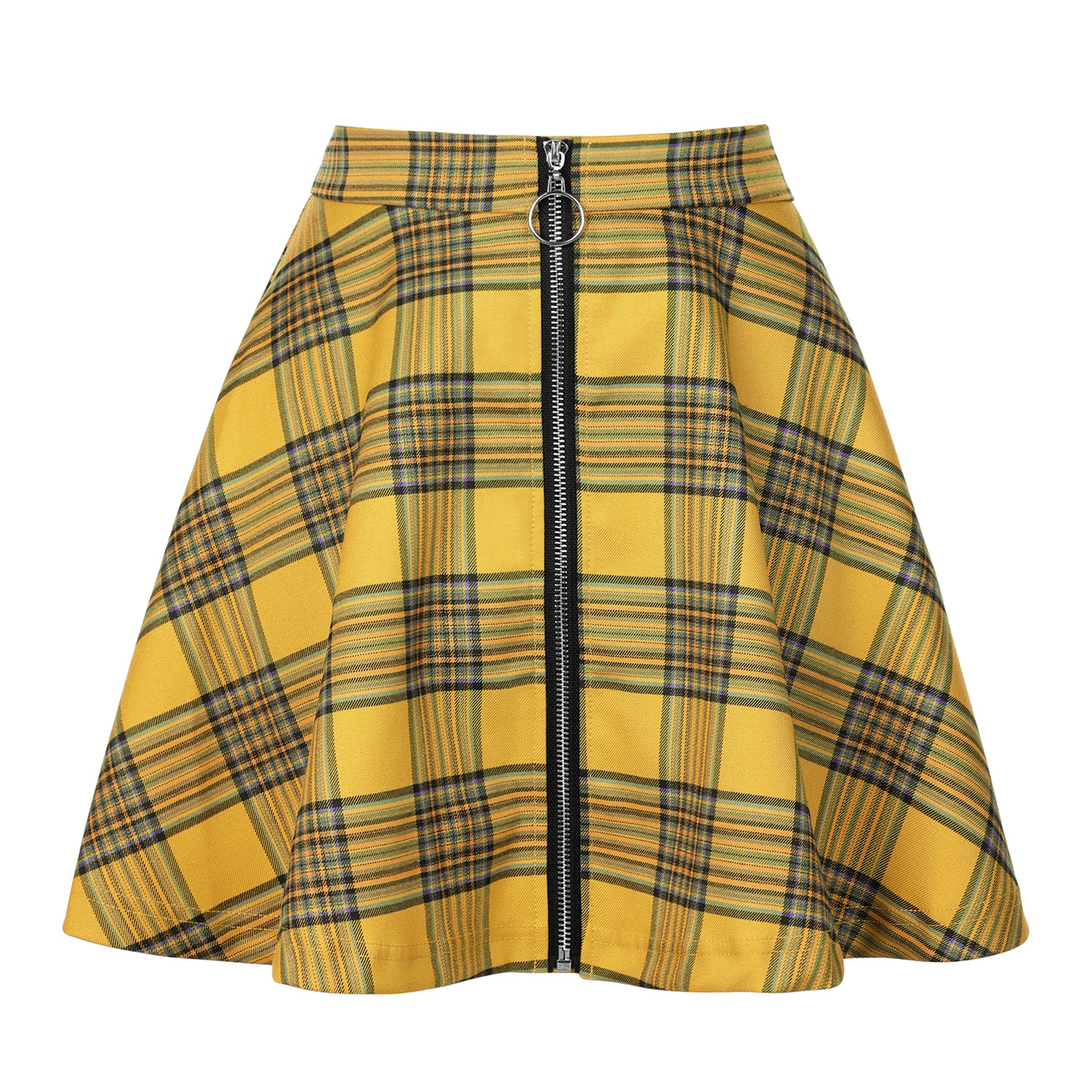 Minifalda acampanada informal de cintura alta con diseño a cuadros para mujer, con cremallera y corte A