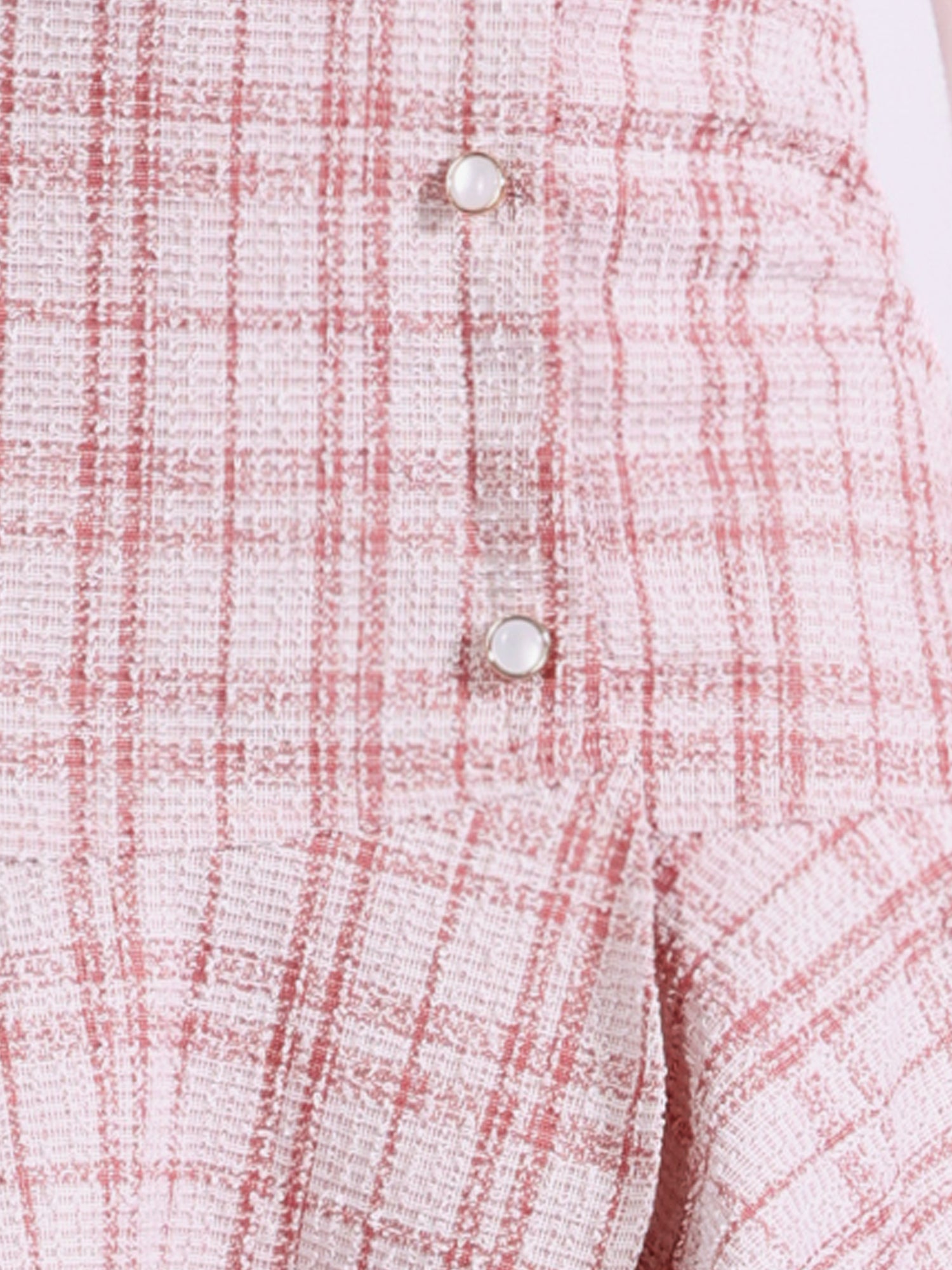Faldas a cuadros para mujer, minifalda de tweed con botones y dobladillo con volantes
