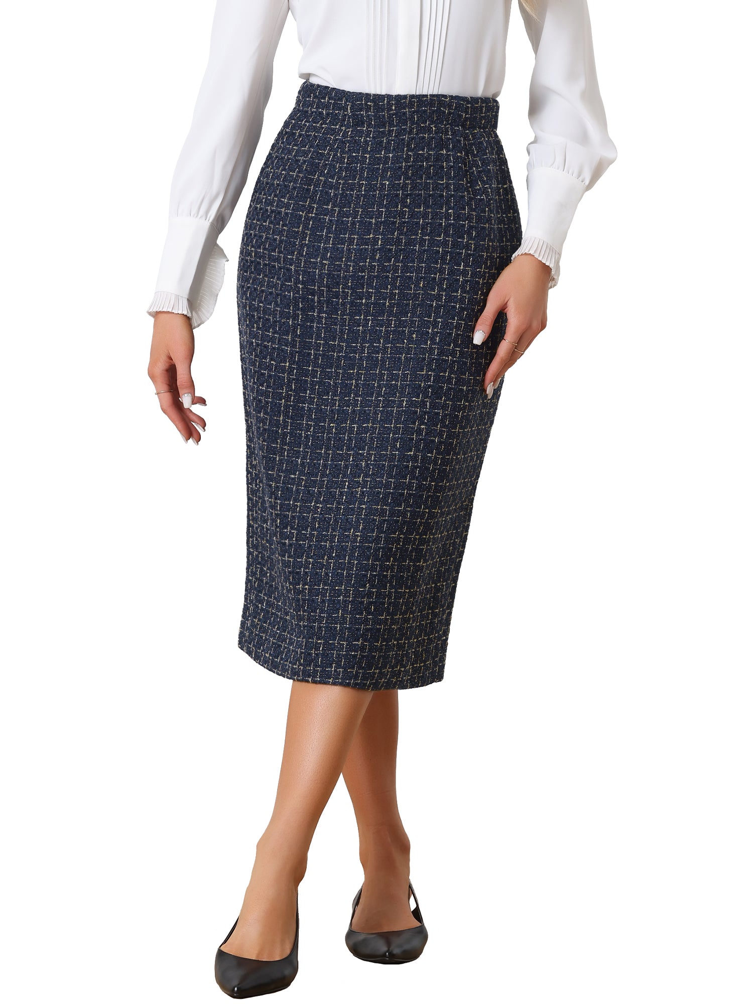 Falda tubo ajustada de tweed a cuadros para mujer, de cintura alta, para el trabajo y la oficina