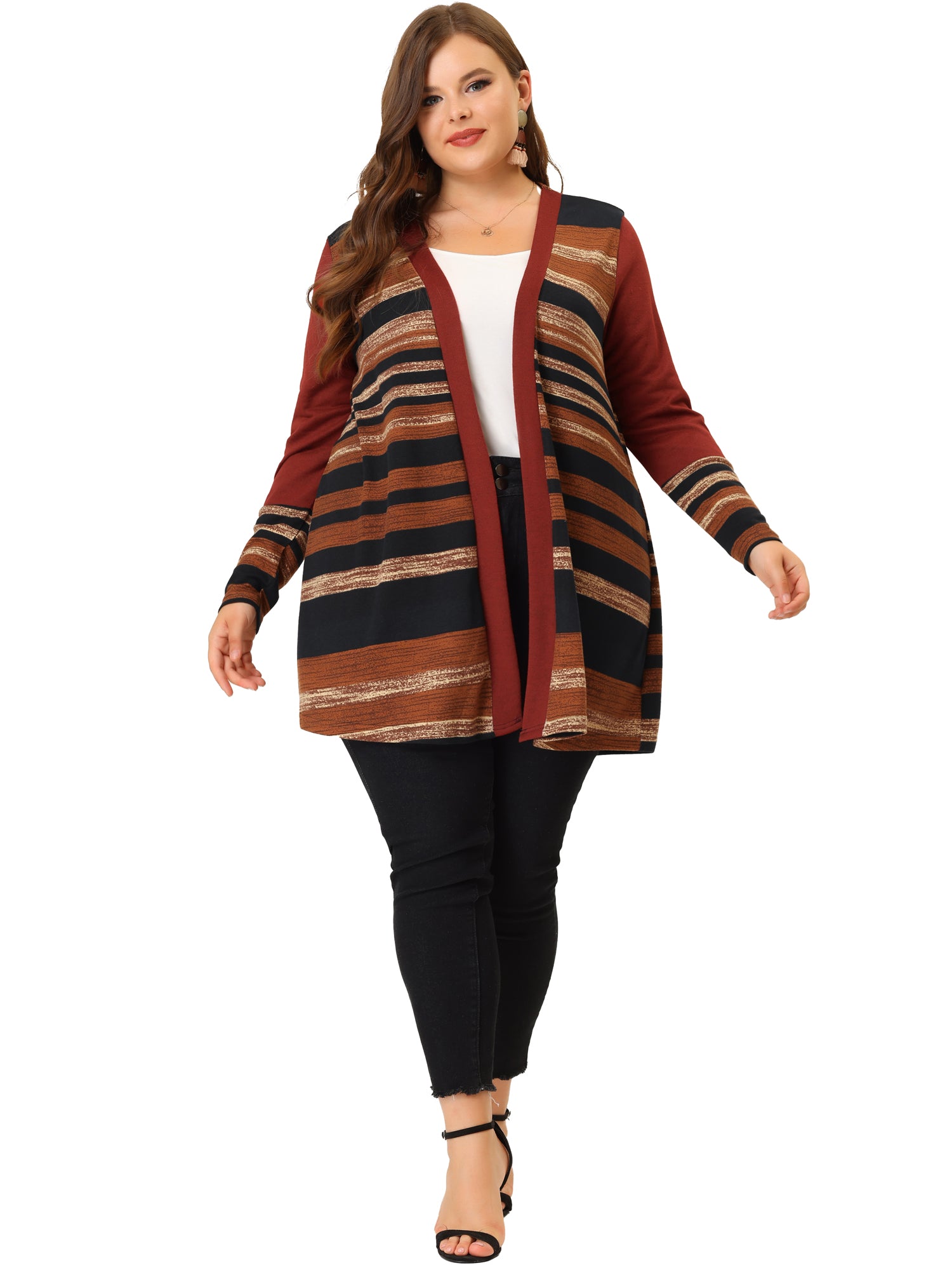 Women's Plus Size Cardigan Long Open Front Striped Sweater Cardigans