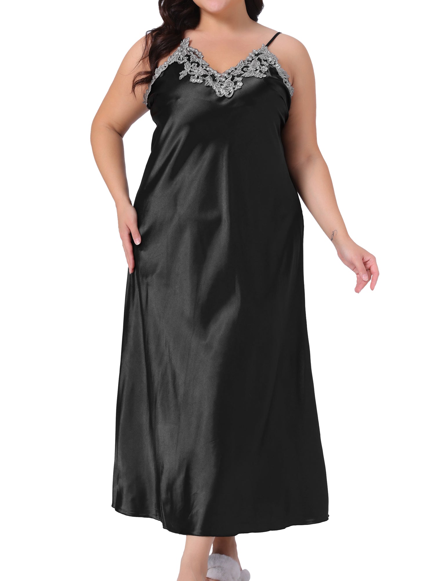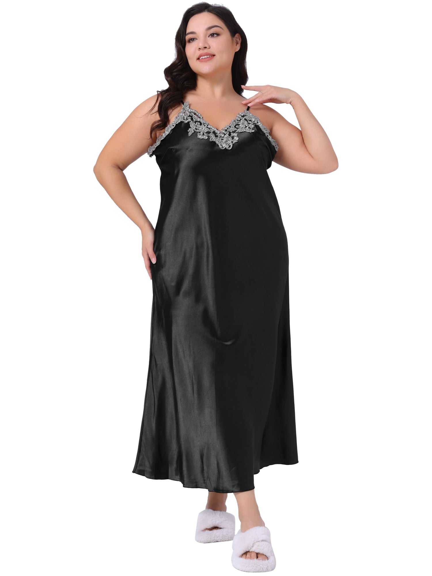 Camisón de satén de seda para mujer, talla grande, lencería, camisón, camisón largo