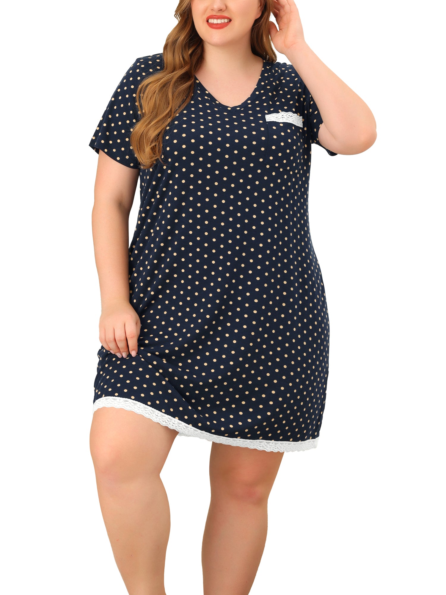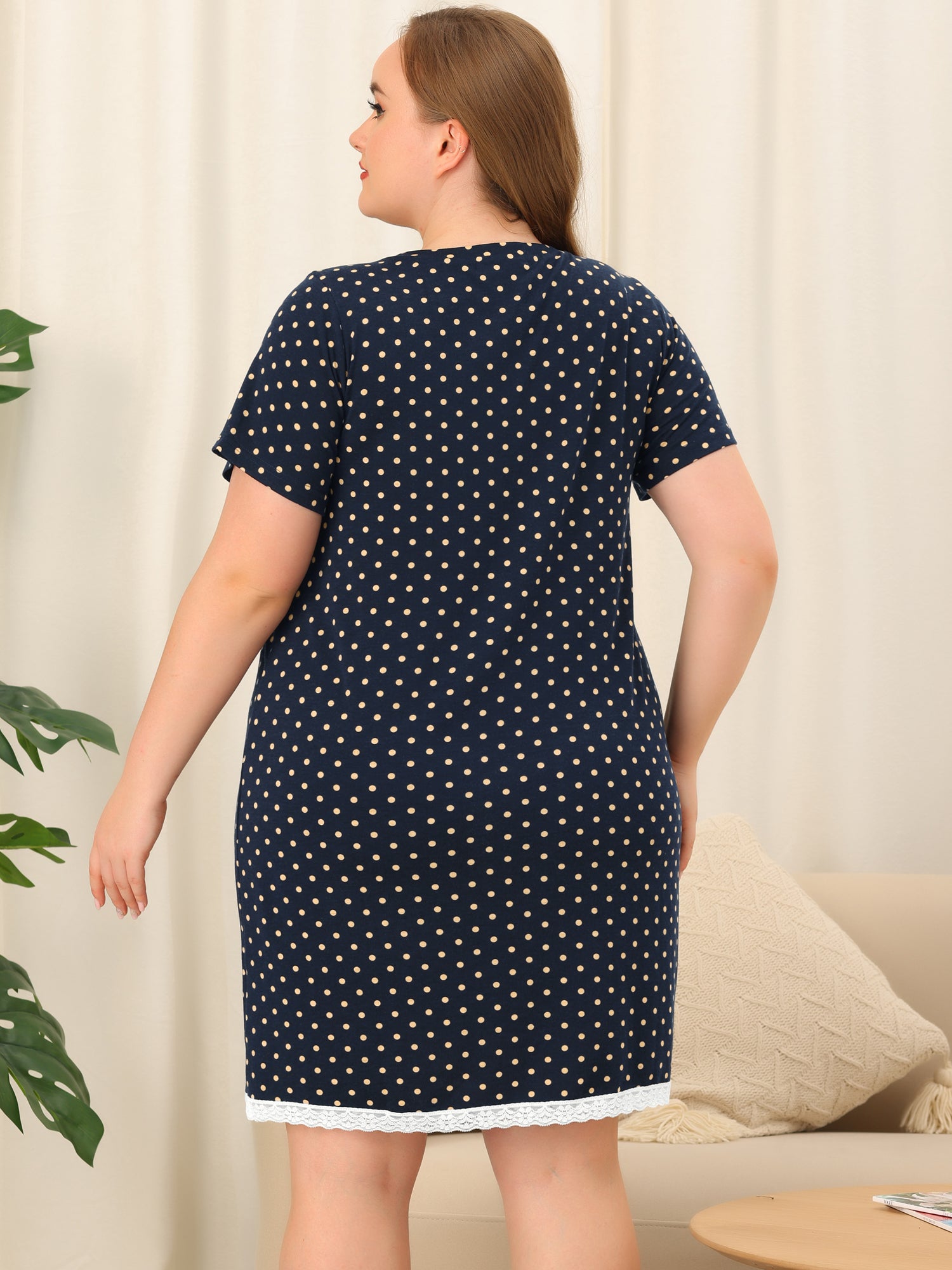 Camisón de talla grande para mujer, ropa de dormir, camisón de manga corta con ribete de encaje, vestido de pijama