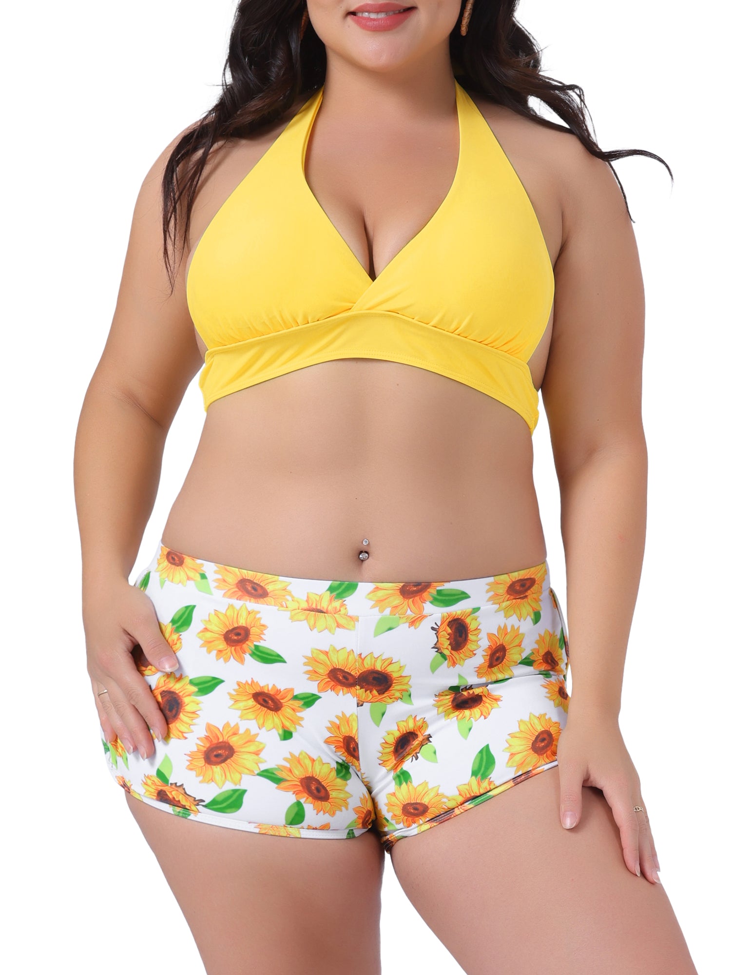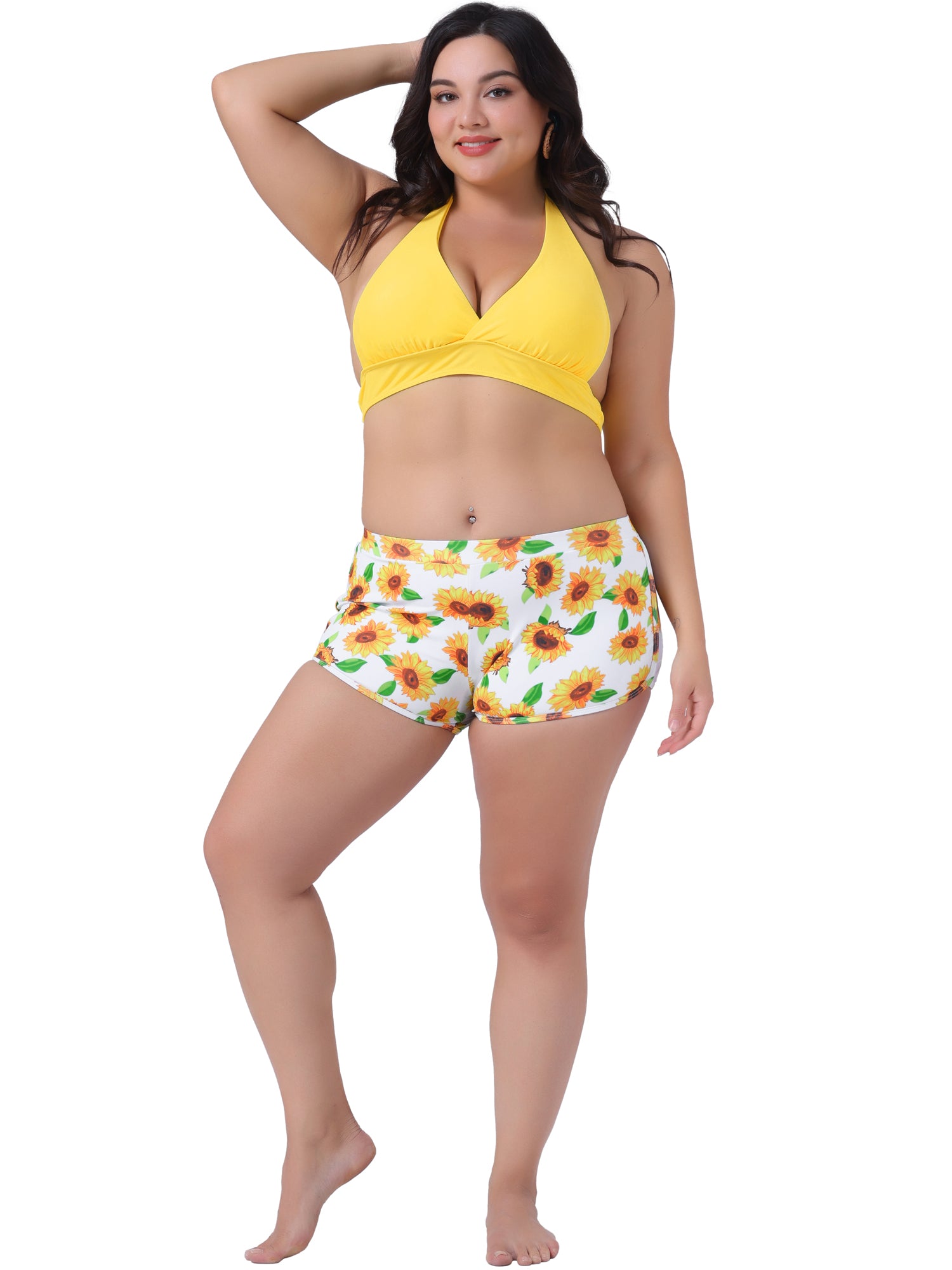 Traje de baño de dos piezas con estampado de girasoles y cintura alta para mujer