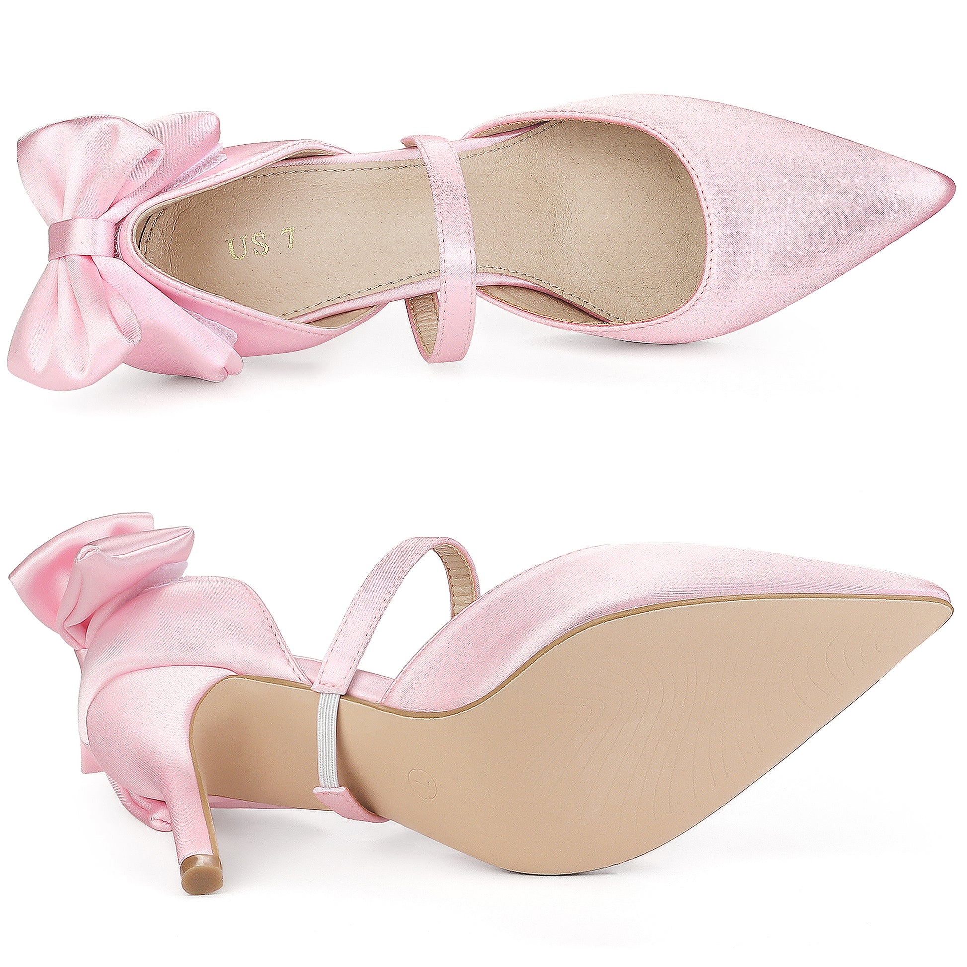 Zapatos de tacón de aguja de satén con lazo y punta puntiaguda para mujer