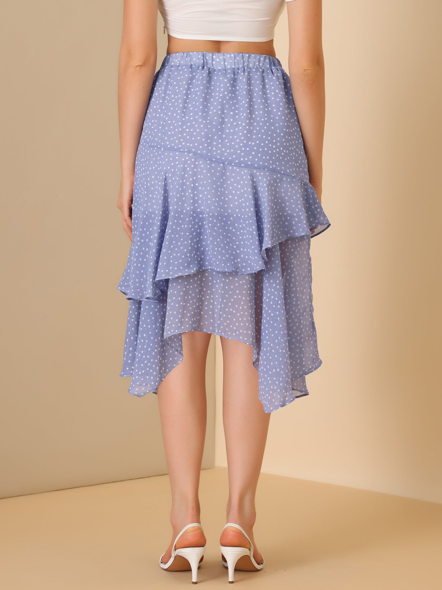 Falda de lunares para mujer, elástica, de cintura alta, de gasa con capas irregulares