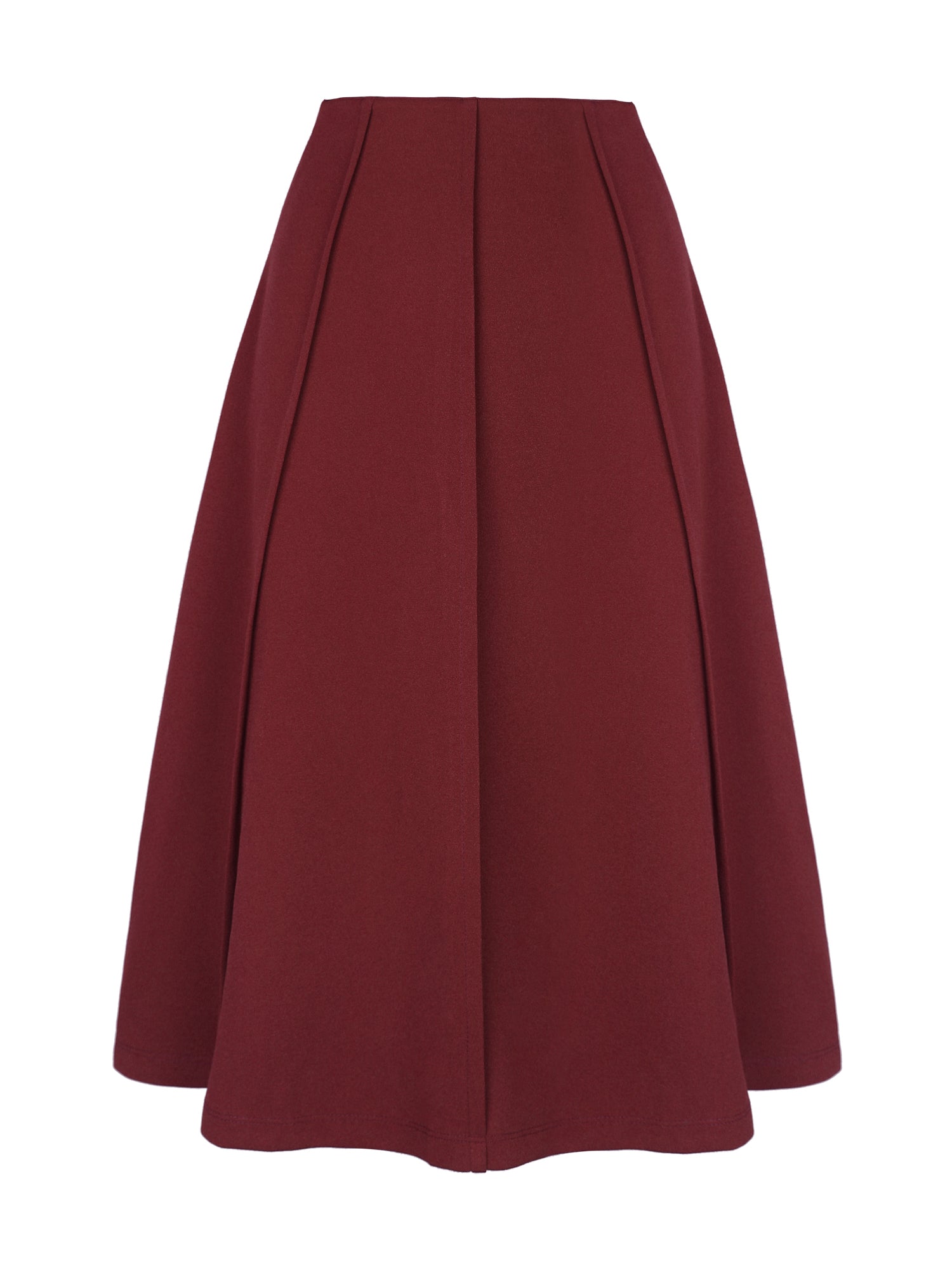 Faldas retro de cintura alta para mujer, color liso, plisadas por debajo de la rodilla, acampanadas
