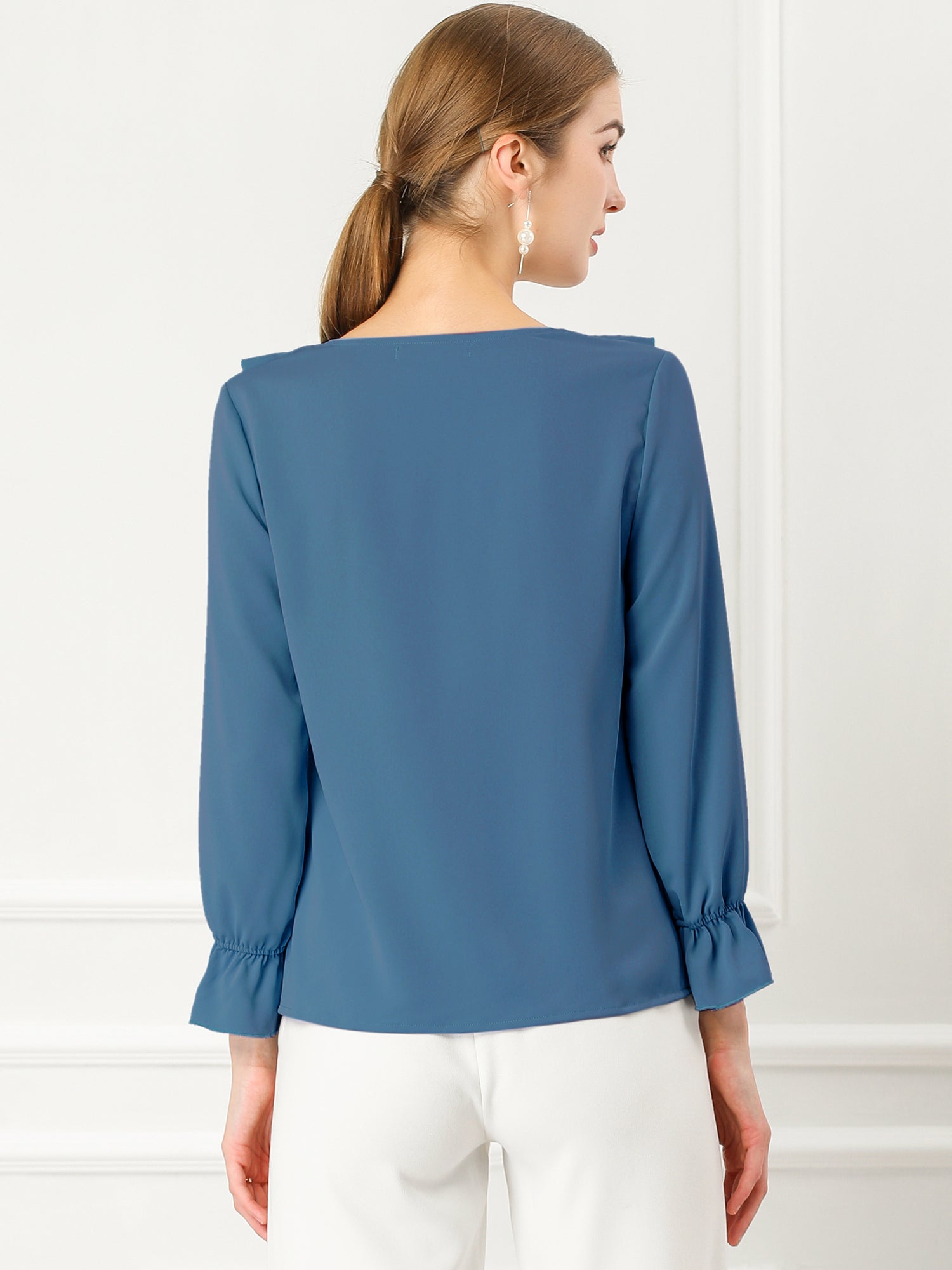 Blusa elegante con volantes para mujer, cuello en V, manga larga, informal y elegante (disponible en tallas grandes)
