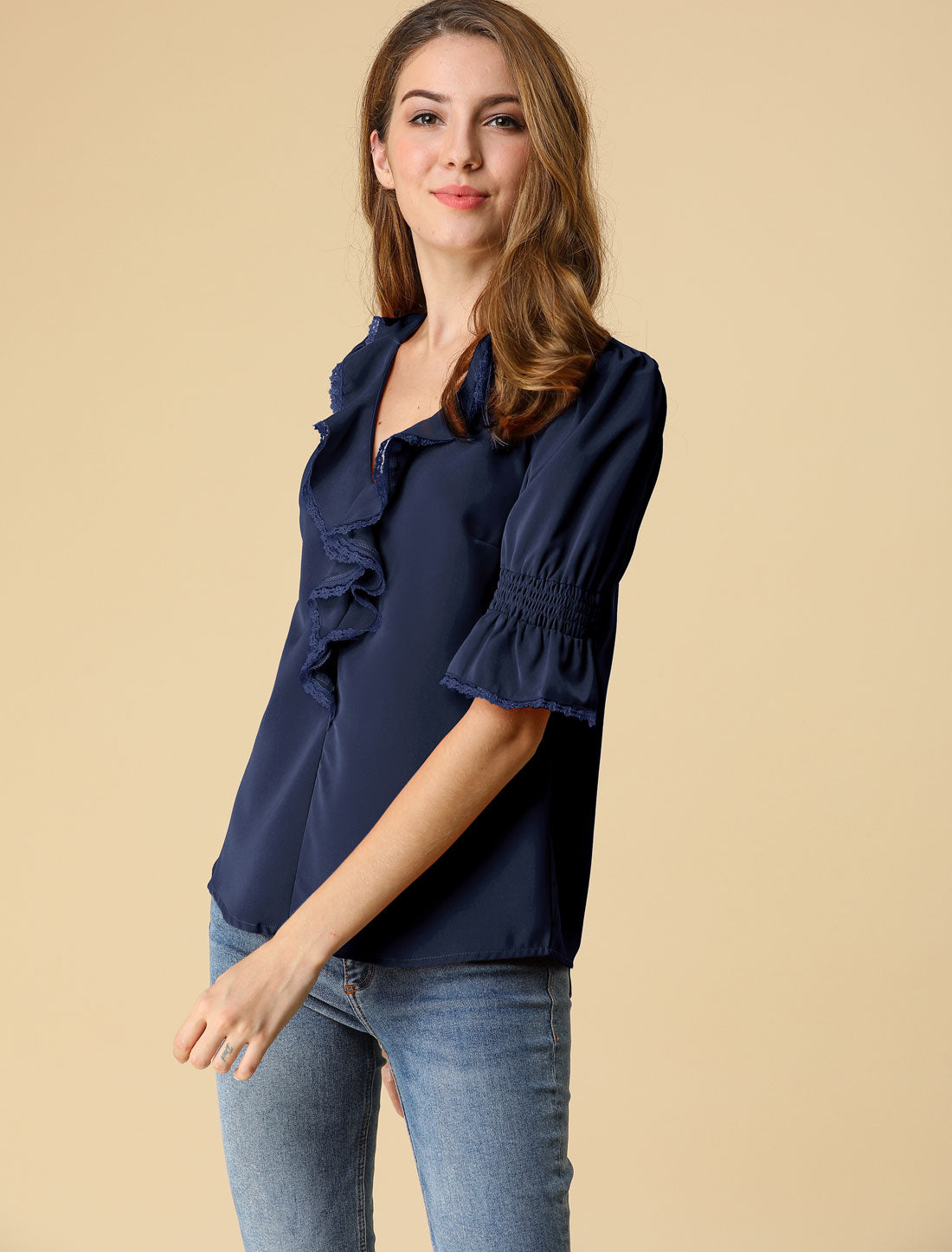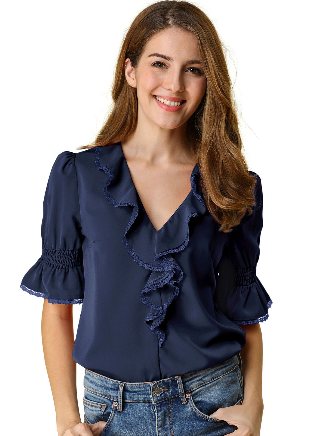 Escote en V con volantes