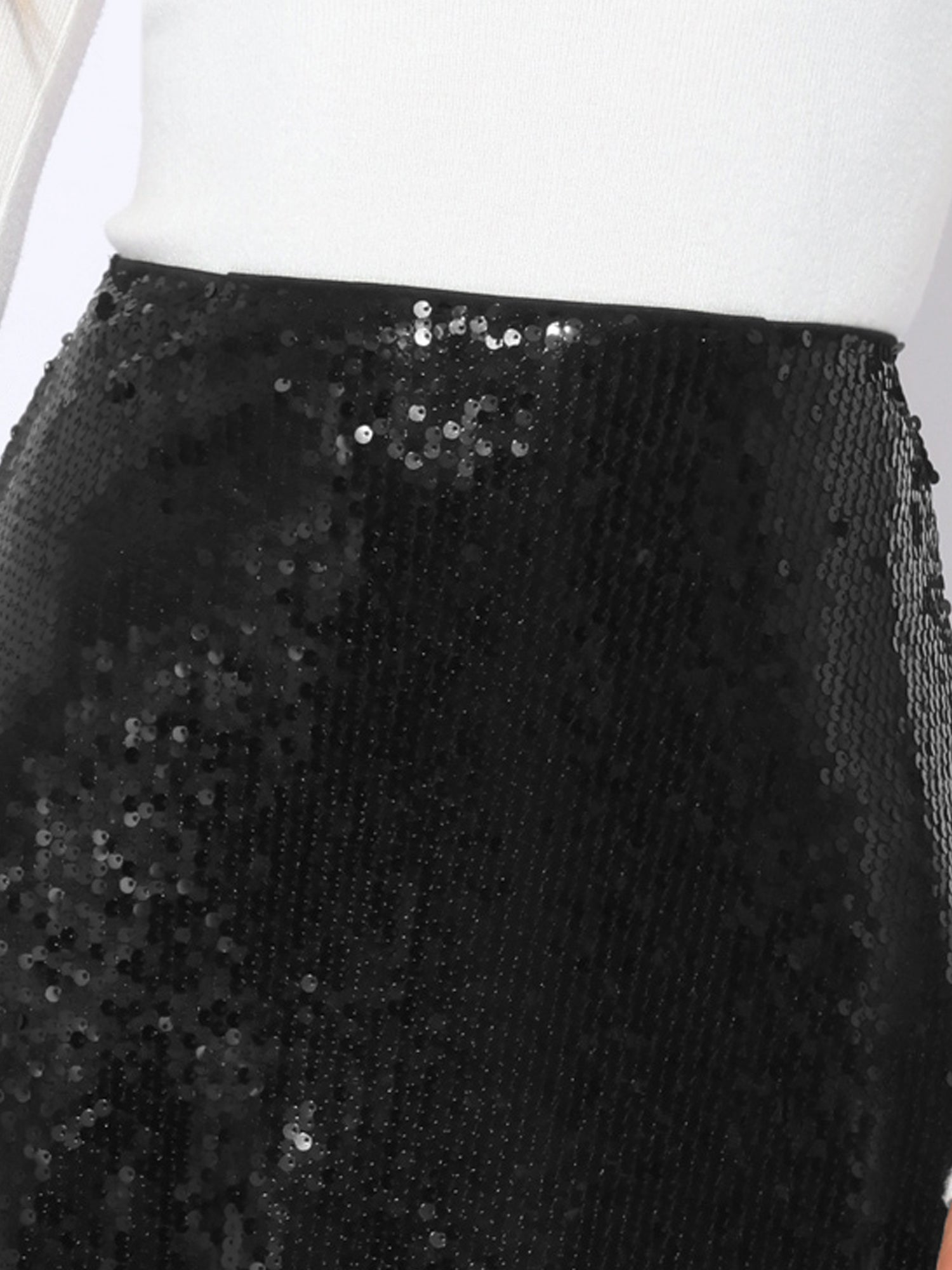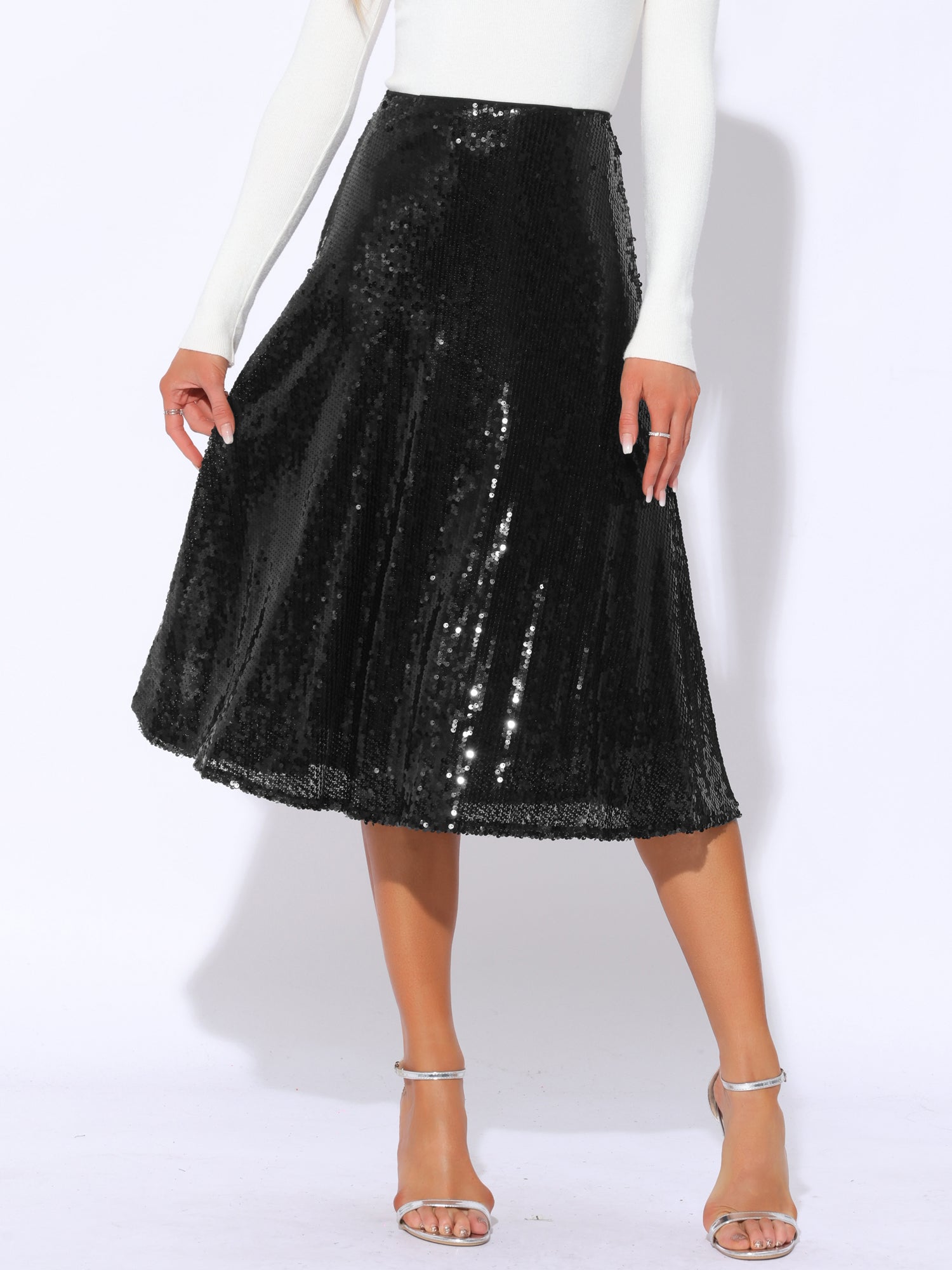 Falda midi de lentejuelas para mujer con brillo brillante y vuelo para cóctel