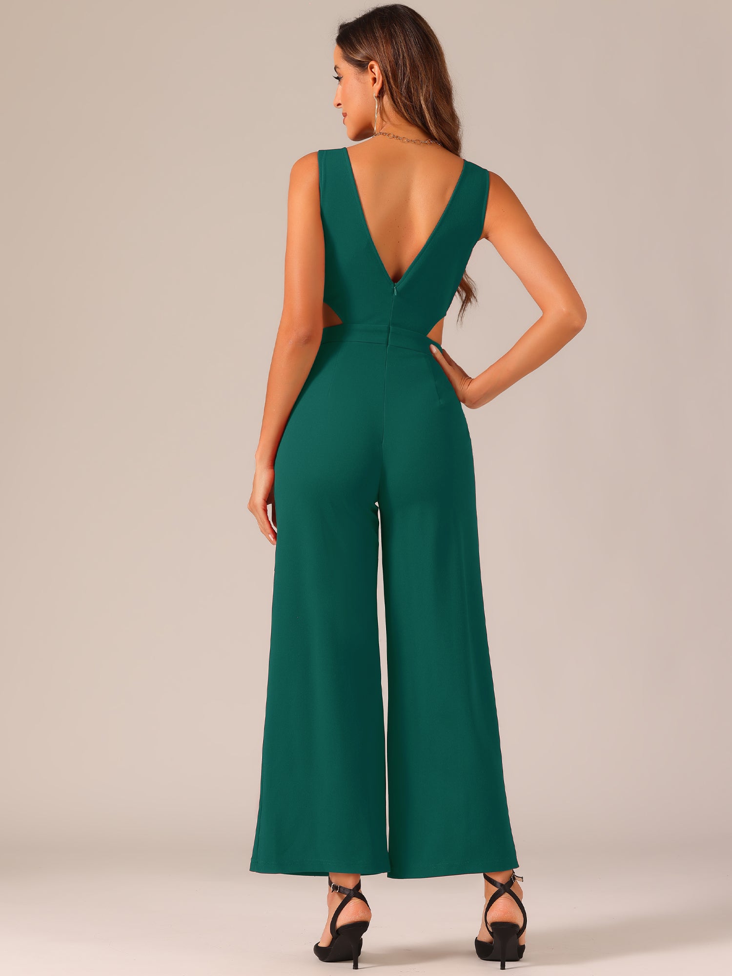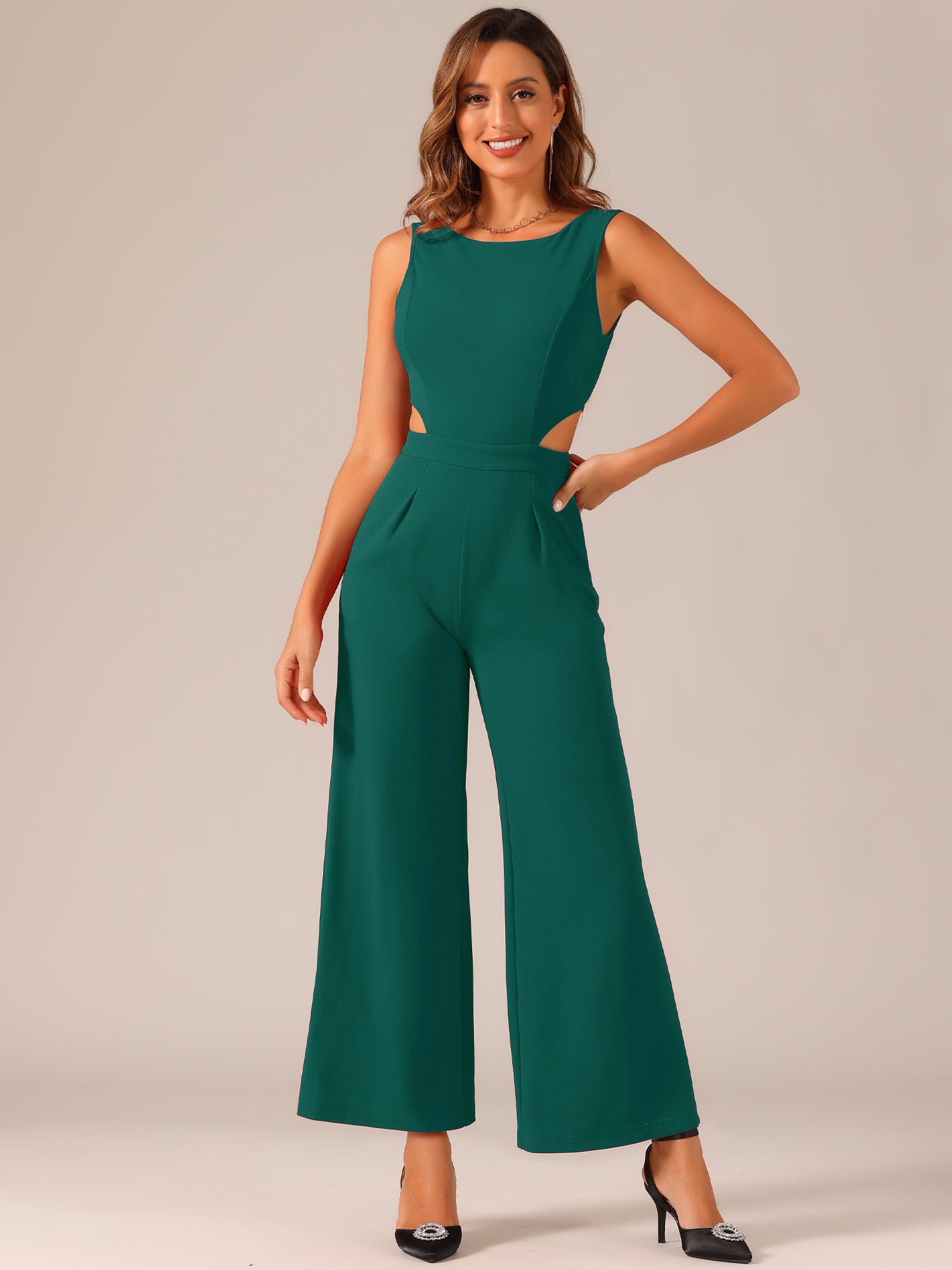 Mono de verano para mujer, sin mangas, espalda descubierta, corte, cintura alta, pierna ancha