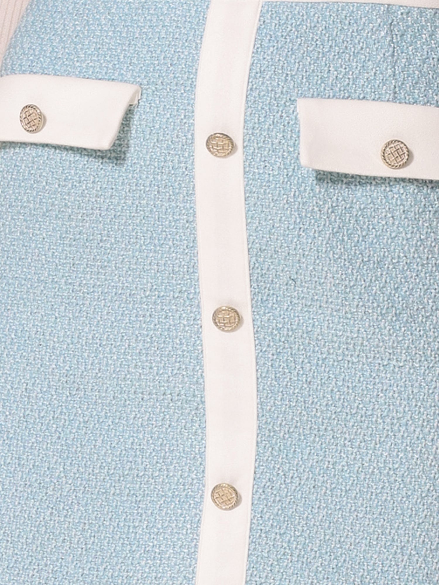 Minifalda de oficina elegante y ajustada con cintura alta y botones decorados de tweed para mujer