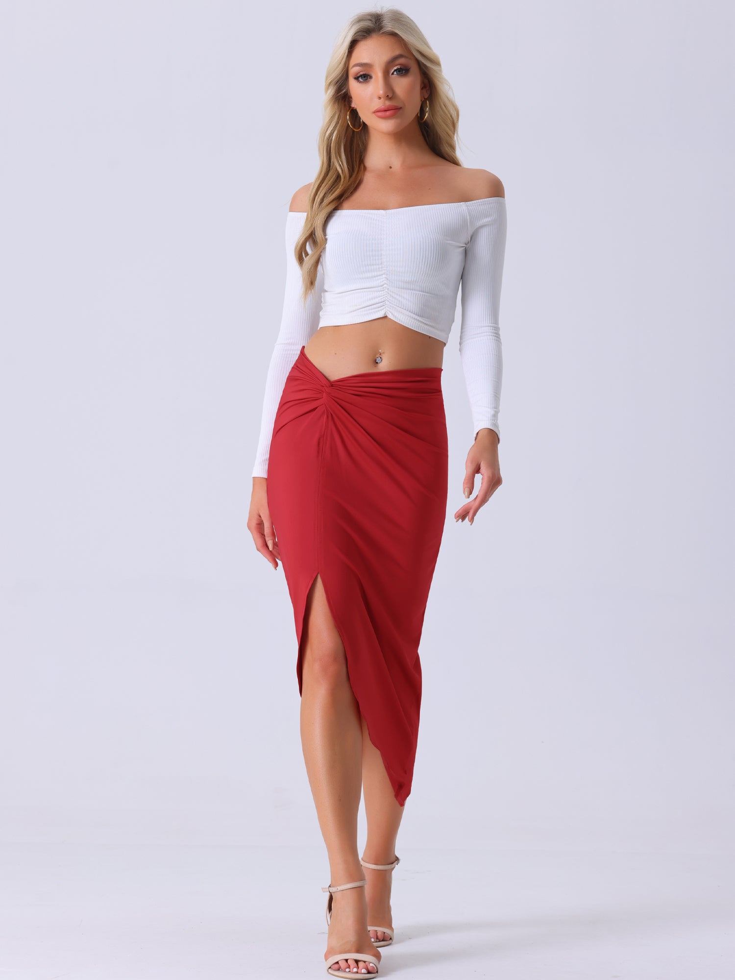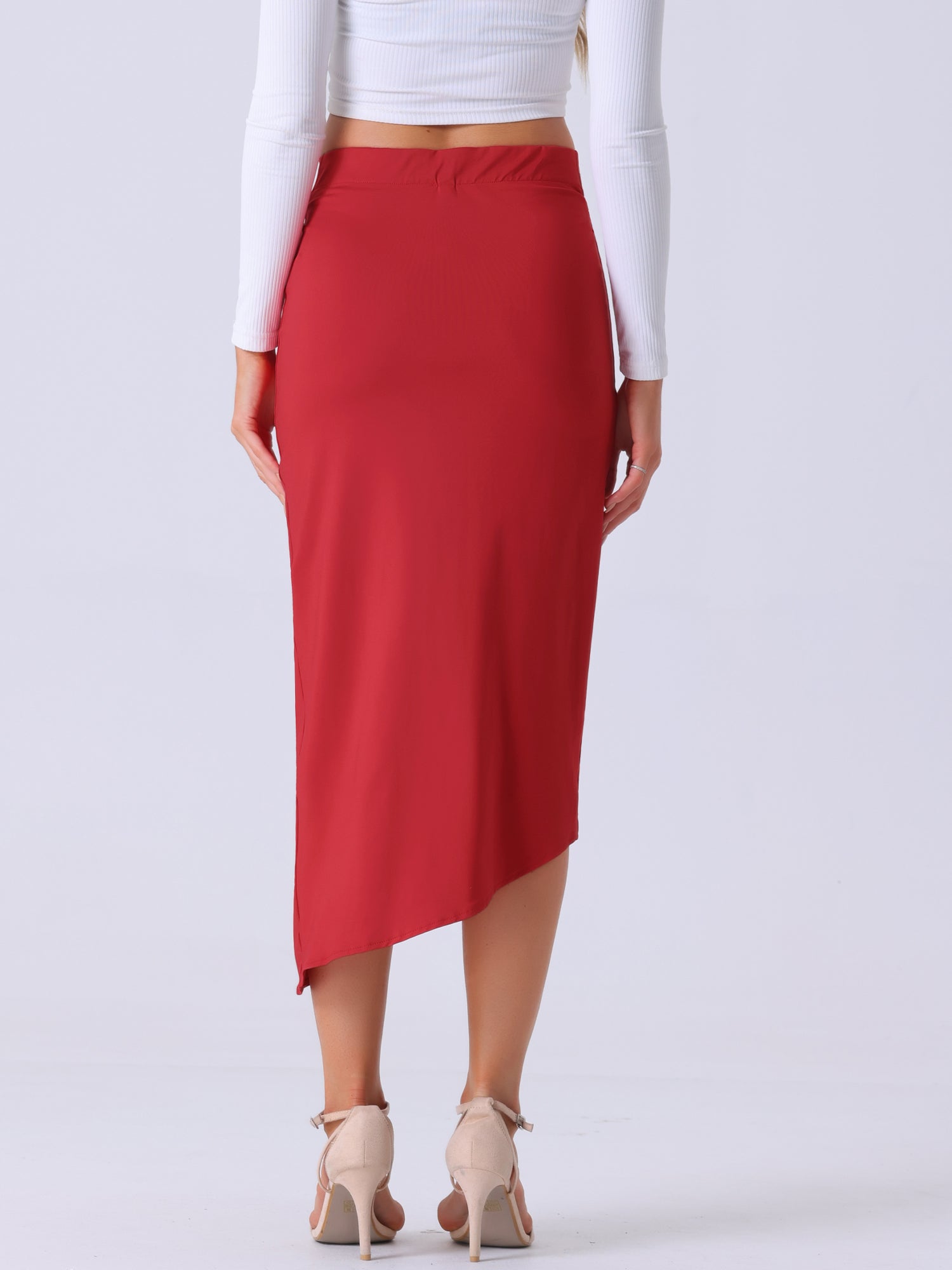 Faldas de playa bohemias asimétricas con abertura alta fruncida y parte delantera torcida para mujer