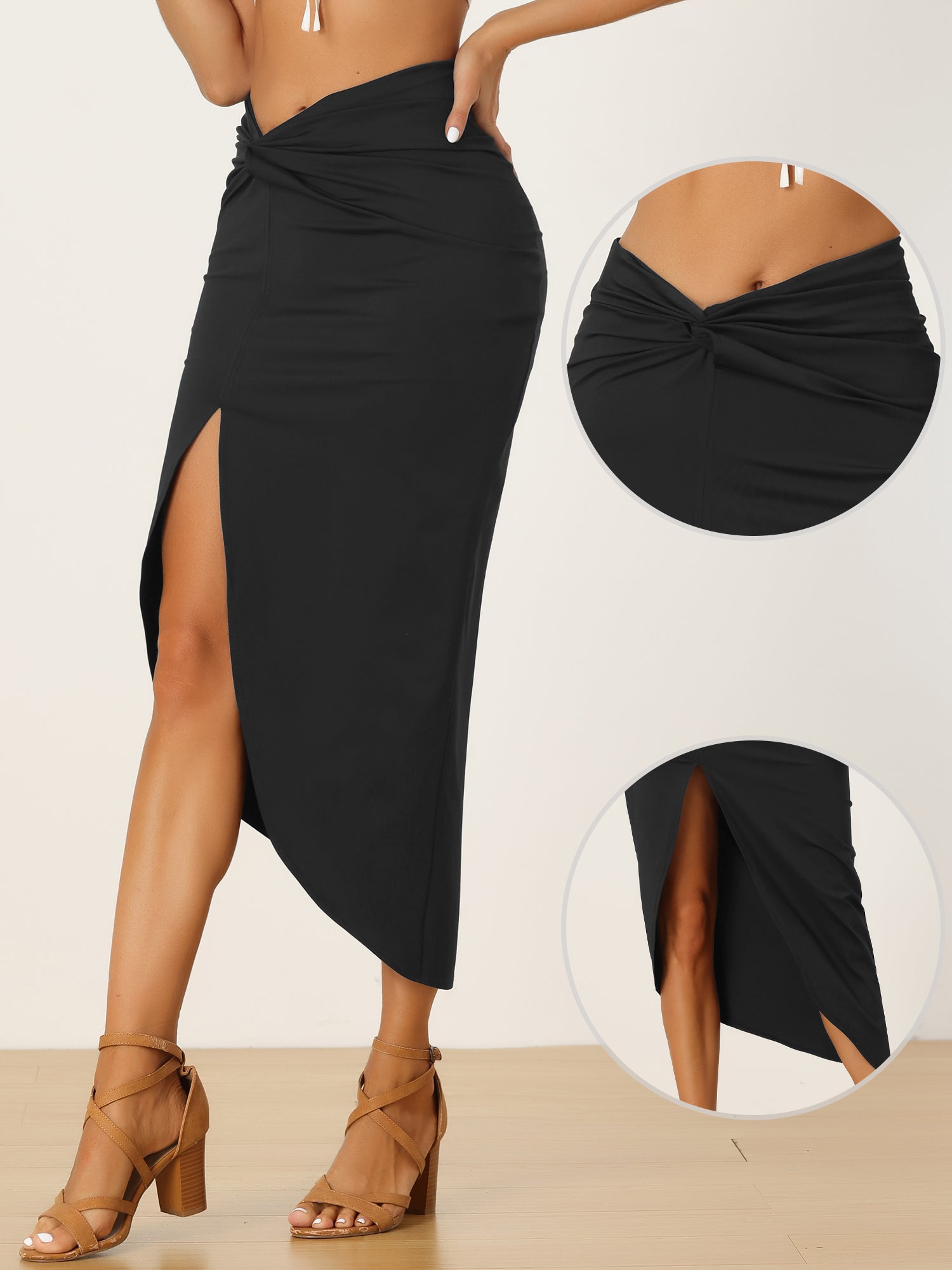Faldas de playa bohemias asimétricas con abertura alta fruncida y parte delantera torcida para mujer