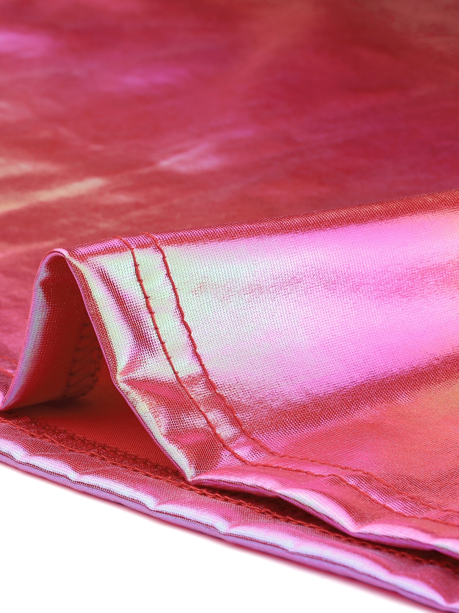 Top corto sin mangas con cuello en U para mujer, estilo club, con estampado holográfico brillante y metálico