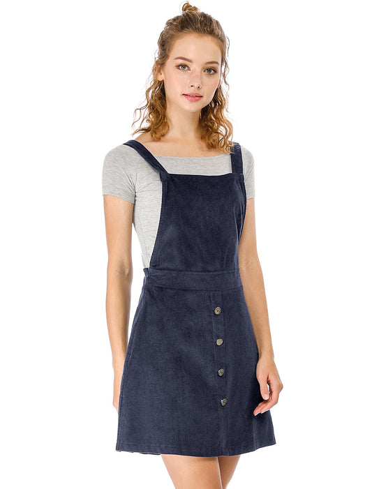 Women's Corduroy Button Front A-Line Bib Overall Pinafore Dress