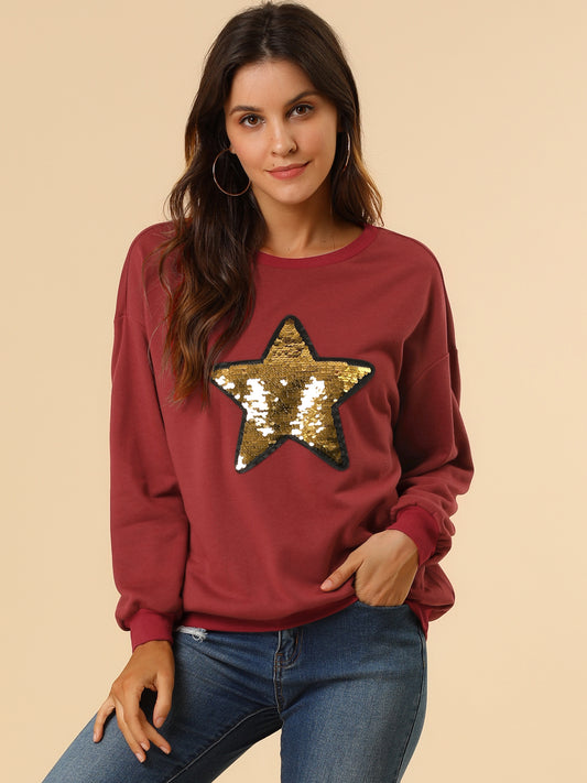 Women's Sequin Shiny Star Crew Neck Long Sleeve Sweatshirt Top