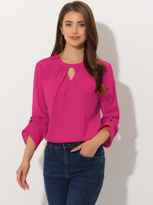 Women's Keyhole Neck Long Sleeve Business Casual Blouse Shirt