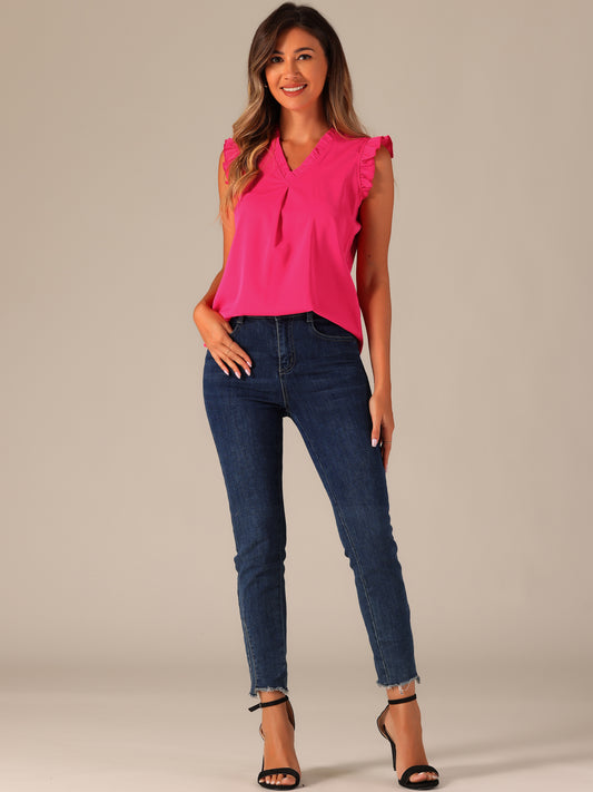 Women's Ruffled Sleeveless Blouse Work Business Top