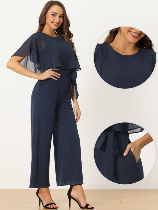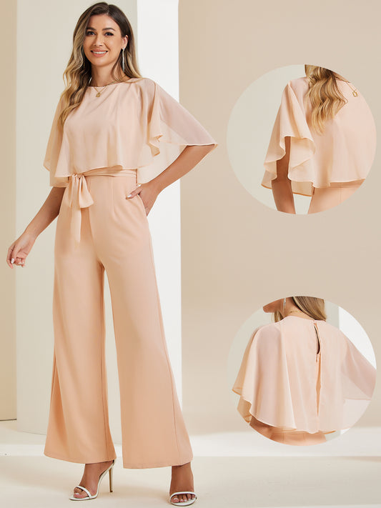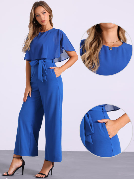 Women's Dressy Casual Tie Waist Wide Leg Pants Ruffle Sleeve Jumpsuit