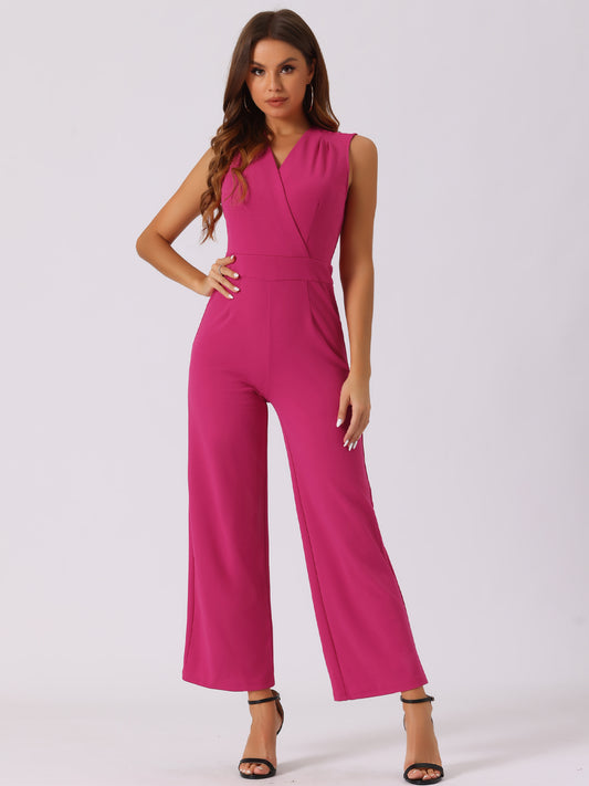 Women's Elegant Jumpsuit V Neck Wrap Front High Waist Wide Leg Long Pants Jumpsuits