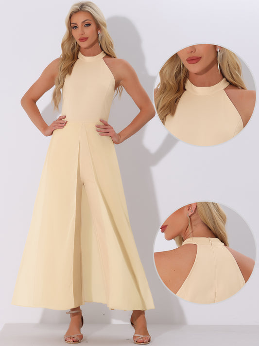 Women's Summer Sleeveless Halter Neck Wedding Chiffon Wide Leg Dressy Elegant Jumpsuit
