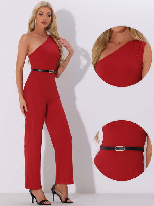 Women's Elegant Office Jumpsuit Dressy One Shoulder Belted Wide Leg Pants