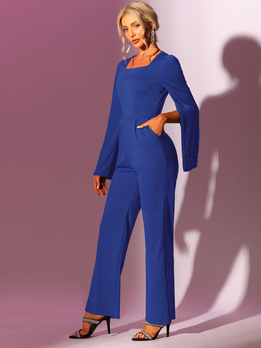 Women's Long Playsuits U Neck Casual Office Business Overalls Jumpsuit