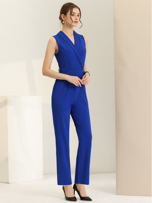 Women's Work Jumpsuit Formal Office Sleeveless Belted Jumpsuits Dressy Romper