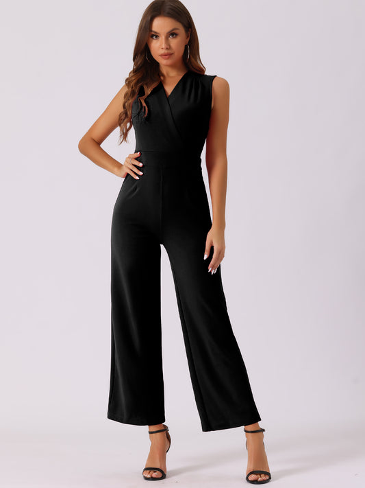 Women's Elegant Jumpsuit V Neck Wrap Front High Waist Wide Leg Long Pants Jumpsuits