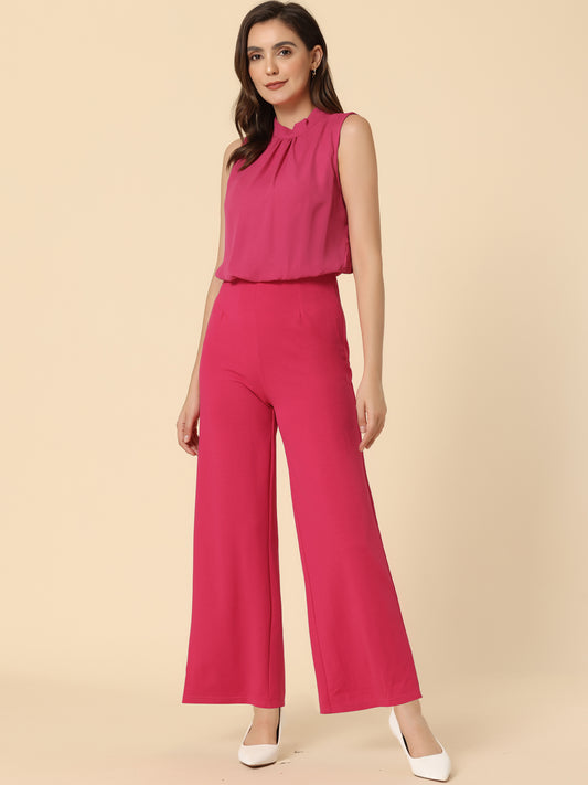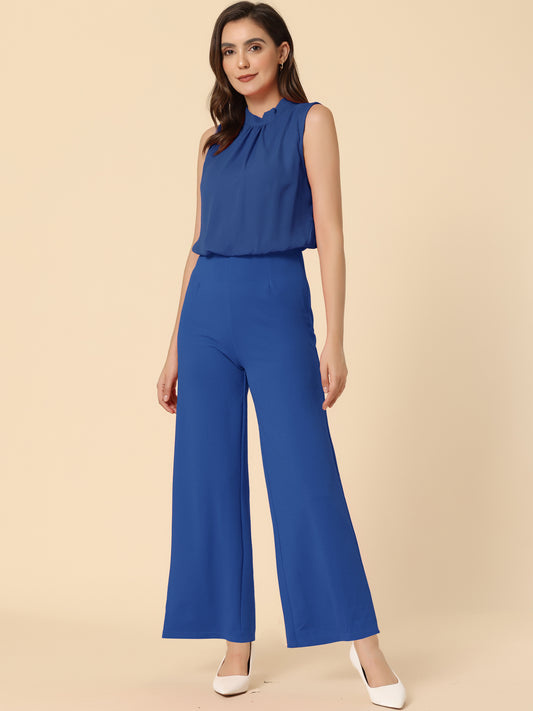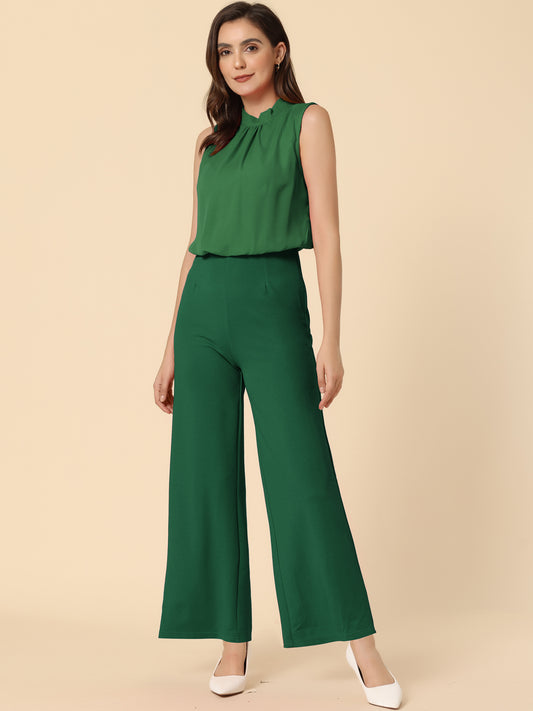 Women's Business Casual Work Sleeveless Jumpsuit High Waist Wide Flare Leg Romper