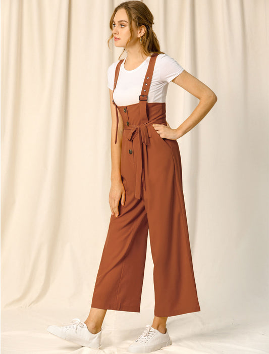 Women's Wide Leg Overalls Loose Fit Belted High Waist Suspenders Jumpsuits