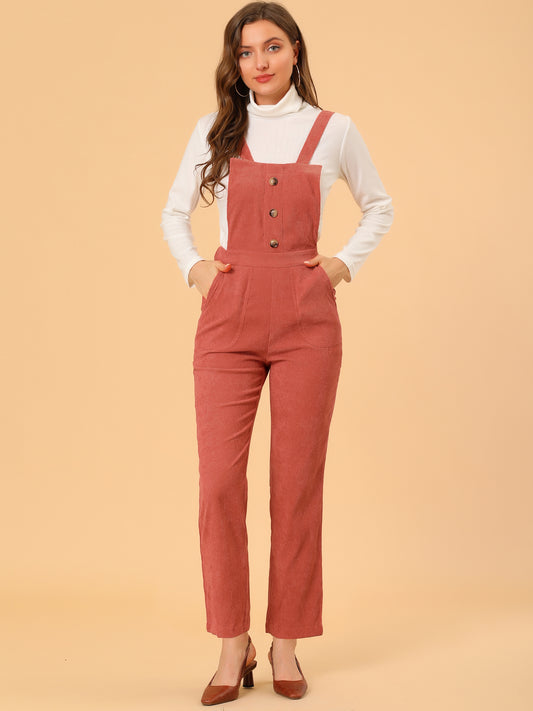 Women's Casual Elastic Back Corduroy Overalls Strap Pants