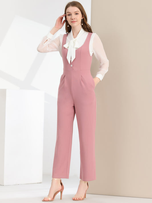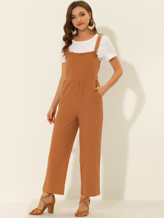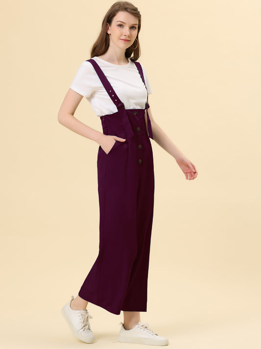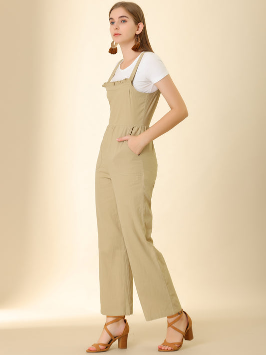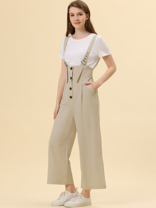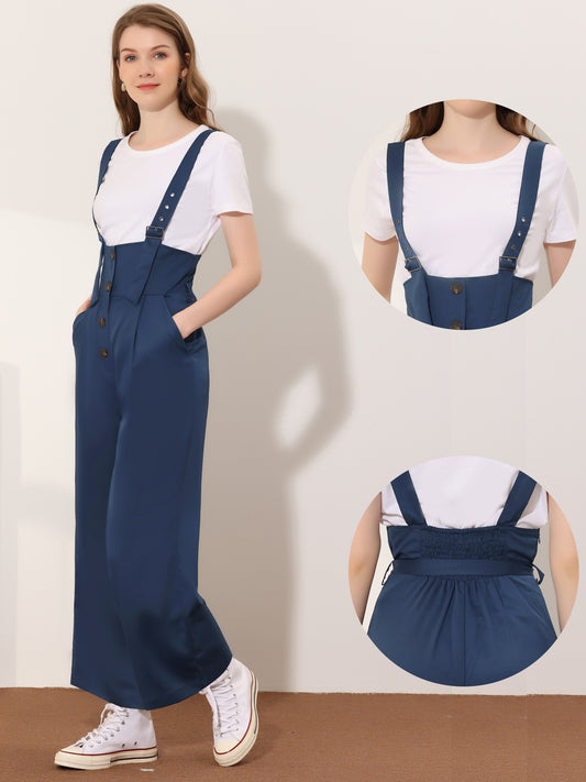 Women's Overalls Wide Leg Pants Slant Pocket Long Suspenders Jumpsuit