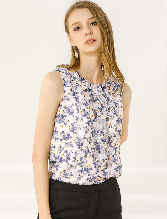 Women's Ruffle Sleeveless Chiffon Floral Top