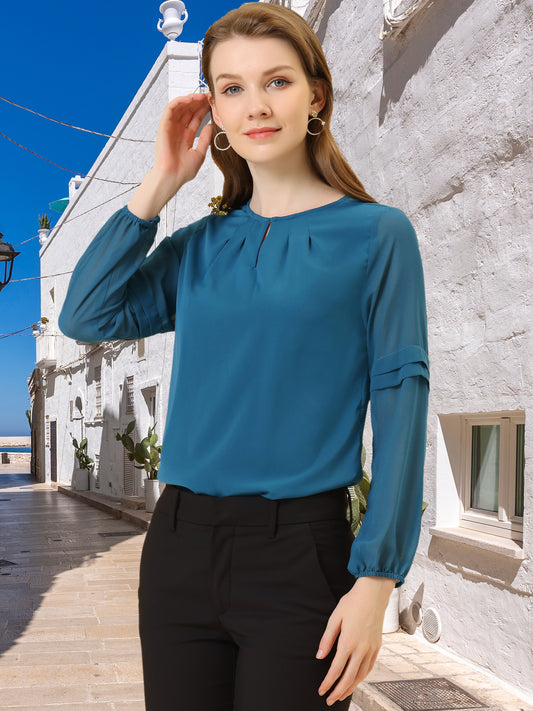 Women's Keyhole Neck Long Sleeve Business Casual Blouse Shirt