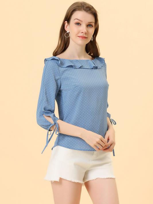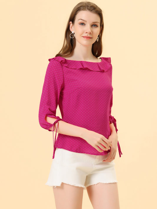 Women's Ruffled Collar Polka Dots 3/4 Sleeve Blouse