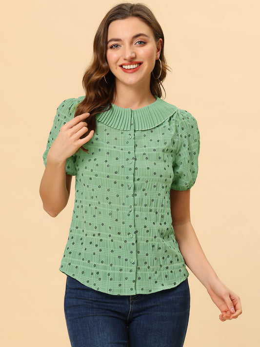 Women's Button Down Short Sleeve Pleated Collar Casual Daily Floral Blouse Shirt