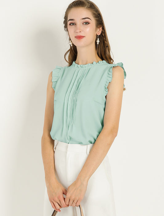 Women's Business Casual Sleeveless Ruffle Blouse Top