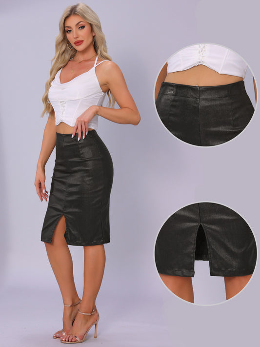 Women's Party High Waist Shining High Waist Bodycon Pencil Metallic Midi Skirt