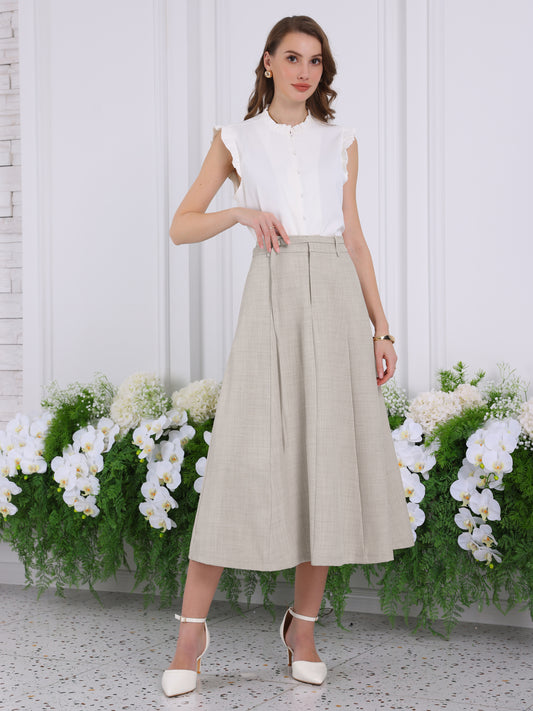 Women's Flare High Waist Casual Work A-Line Midi Skirt