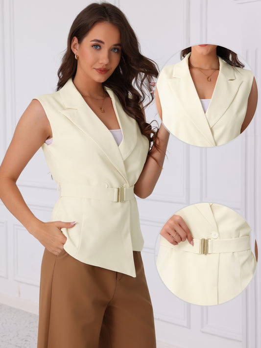 Women's Belted Dressy Sleeveless Business Casual Blazer Vest