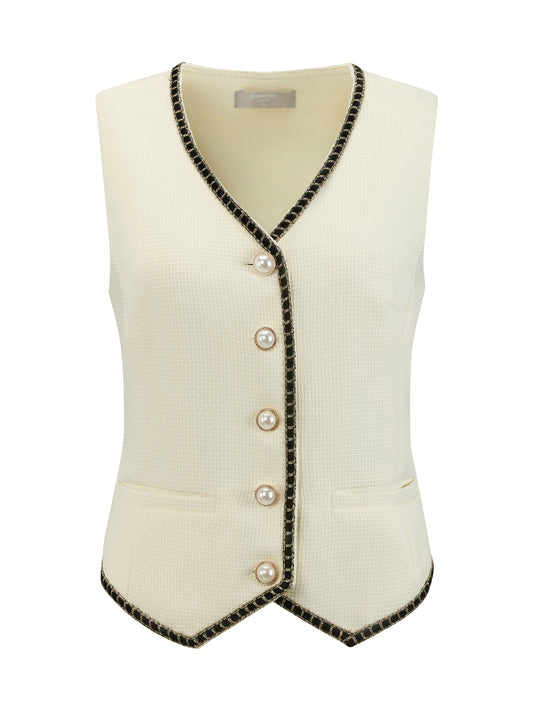 Women's Tweed Blazer Vest Button Down V Neck Business Casual Waistcoat