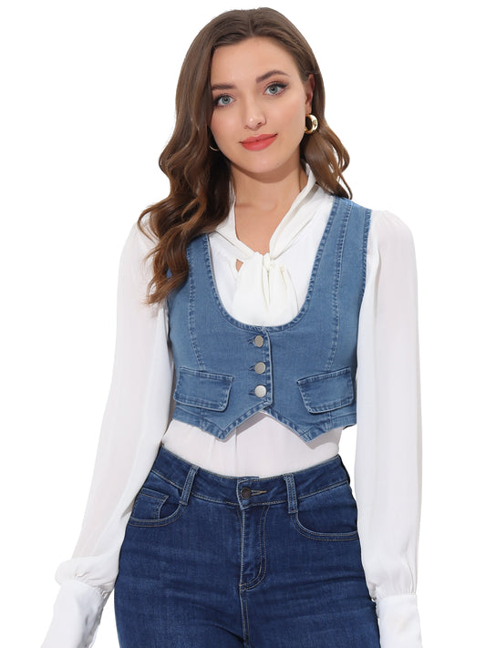 Women's Button Up Sleeveless Crop Jean Denim Vest