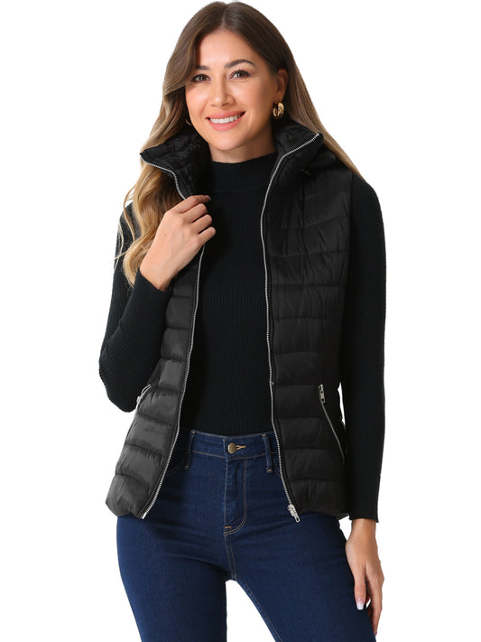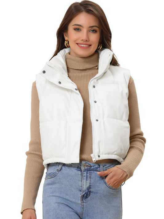 Women's Stand Collar Crop Puffer Vest Lightweight Sleeveless Puffer Padded Gilet Streetwear