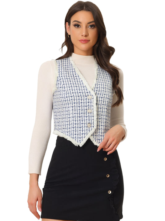 Women's Plaid Waistcoat Fringe Trim Tweed Suit Vest