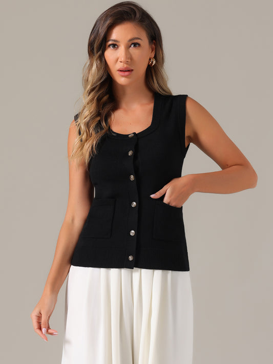 Women's Summer Casual Button Ribbed Sleeveless Knitted Tank Top Vest