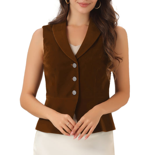 Women's Velvet Lapel V Neck Dressy Blazer Suit Vest