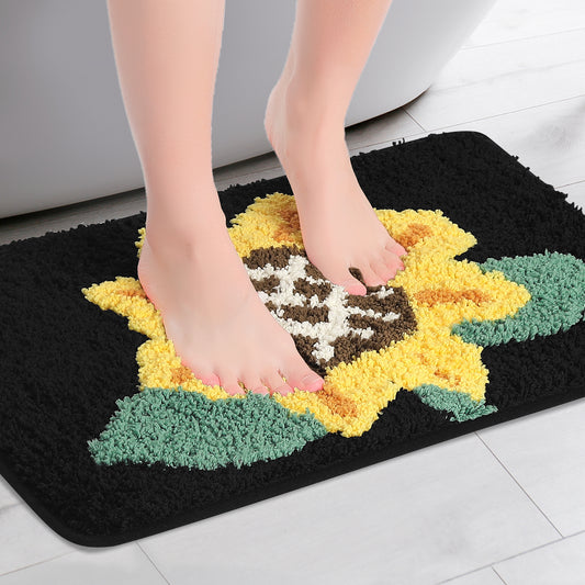 Bathroom Rug, Soft Sunflower Pattern Bath Mat for Bathroom No Slip and Absorbent