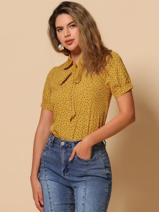 Women's Floral Bow Tie Neck Button Up Ruffled Collar Casual Blouse
