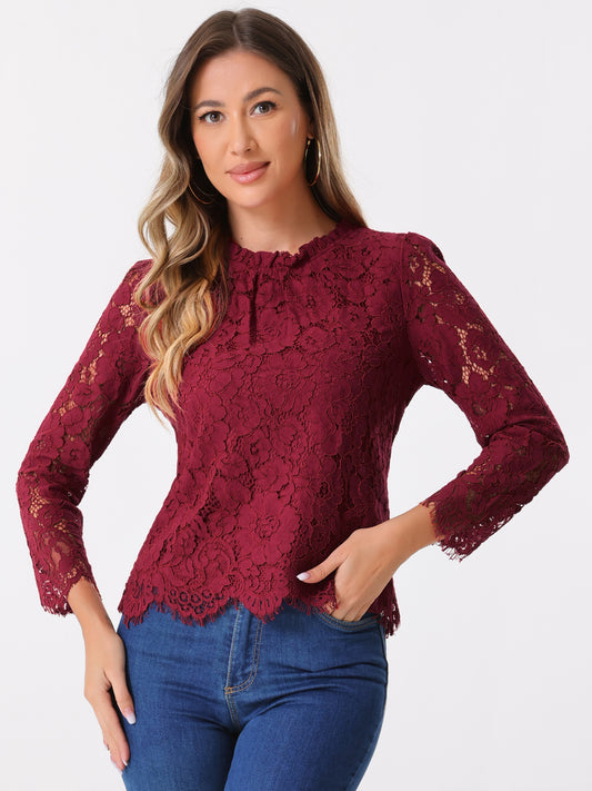 Women's Long Sleeve Lace Top Dressy Elegant Peplum Blouse Shirt